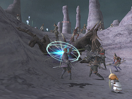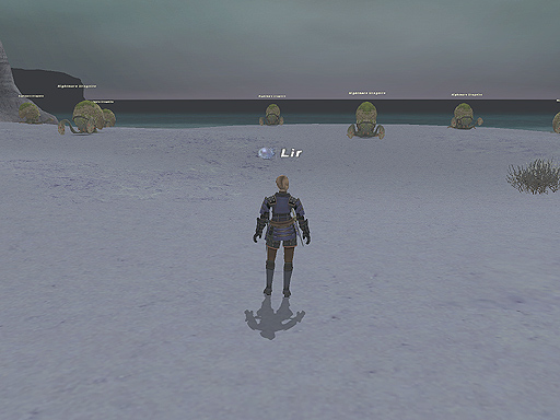 少々北上して、丘の頂上に陣取り。Gi'Bhe Fleshfeasterをやる予定だったんだけど、わたしがpopする石像を間違えていた模様で、1度目の囮失敗。白NMがpopする石像を再確認して、再度チャレンジ。今回は無事に撃破。
