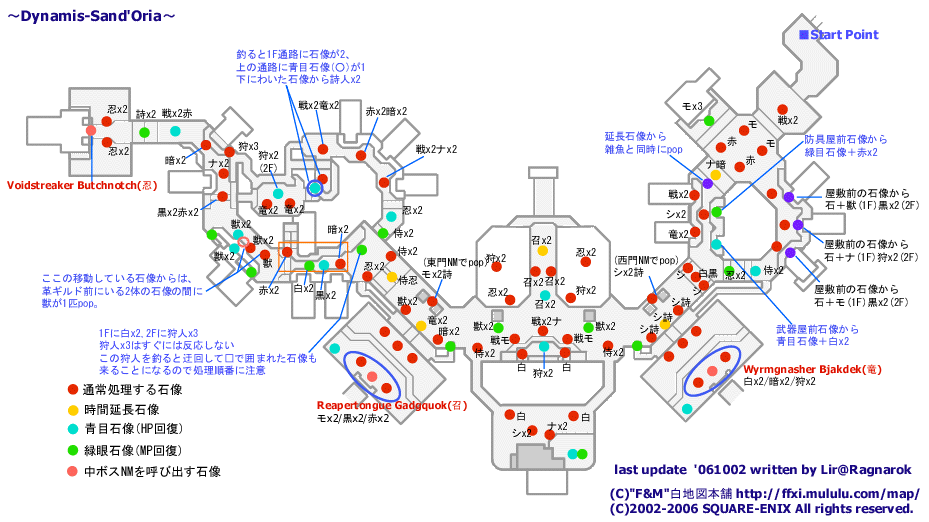 なお、西門側NM撃破で露天の間に石像が1popするが、東側から侵攻していくためここでは割愛。