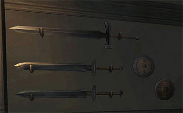 マネキンと同じような仕組みで収納家具にいれてある手持ちの武器や楯をこのように飾れると、コレクションっぽくてよいんだけど。なんとなく捨てられないRareEx武器とかって結構あるし。
