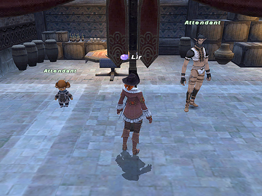 で、今回のアテンダント。タルタル女店員 フィーチャリング漢団とのこと。たるっこ女店員はLSリーダの趣味だからよいとして、漢団は誰の趣味ダ?しかし、どうみても幼女趣味の怪しいオトコにしかみえませぬ。