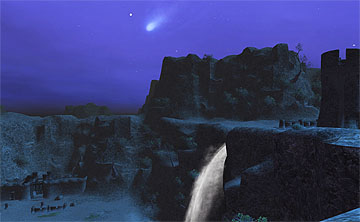 名物の滝。現在の世界では崖になっていて直接上れませんが、この世界ではちゃんと登り口があります。