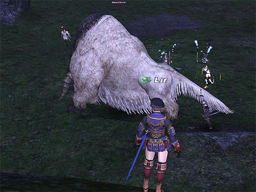 Amalthea本体は、Ramと同様のTP技のほか、範囲内にいるPCに対して無差別ホーリー、バニシュ4、バニシュガ3、ケアル5などの白魔法を使いスタン無効。ただ、バインド・グラビデは問題なく通る上に、不思議とスリプルが入る。まぁ、寝る子は育つって言うしね。